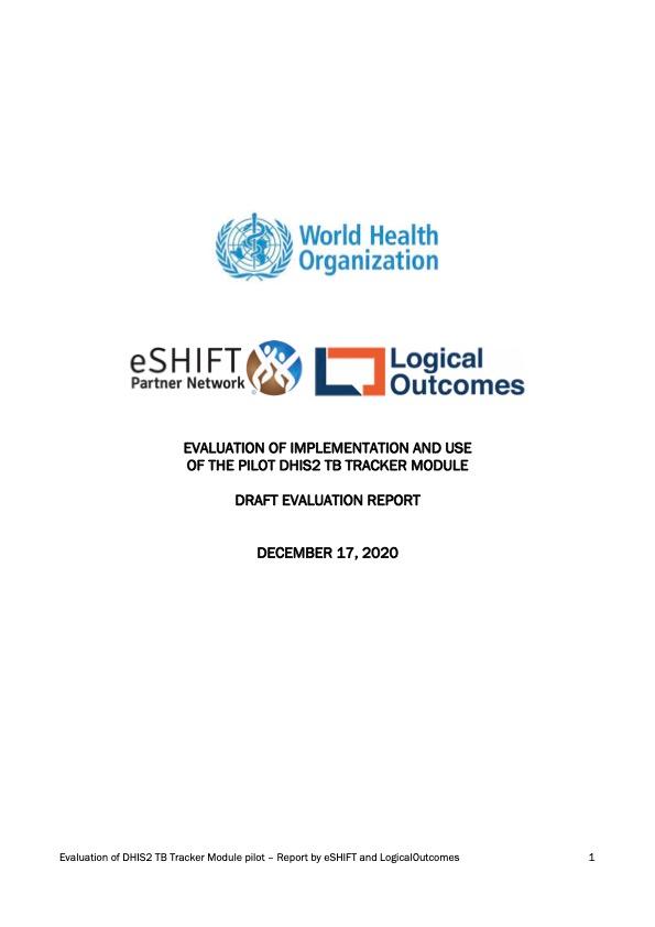 In 2020, the World Health Organization engaged eSHIFT and its partner LogicalOutcomes to evaluate the implementation and use of its DHIS2-based Tuberculosis (TB) Tracker in five countries. As a set of shared configuration extensions to DHIS2, WHO TB Tracker provides a standard case-based surveillance solution for country stakeholders in their response to the disease. For this evaluation, eSHIFT engaged with Ministries of Health and National TB Programmes (NTPs), external NGOs, and donor organizations to develop a comprehensive report on the policies and technical approaches employed in the implementation of TB Tracker, as well as recommendations for ensuring sustainability of the programme.
